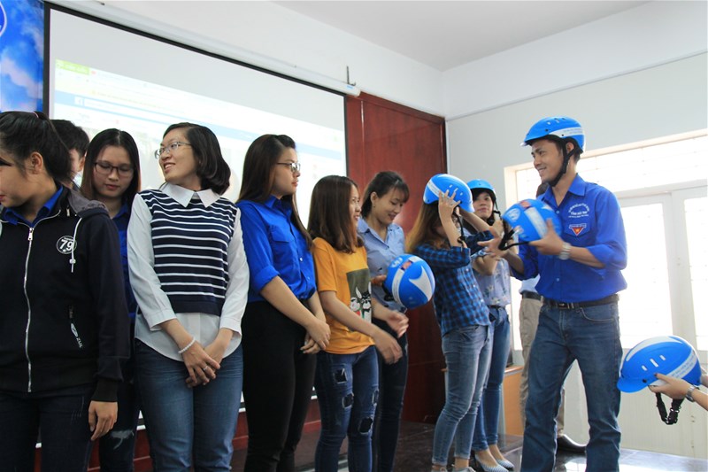 Trong chương trình Hội nghị, Đoàn - Hội Sinh viên trường và Bộ phận QHDN & hỗ trợ Sinh viên đã tiến hành trao tặng nón bảo hiểm cho cán bộ Đoàn - Hội Sinh viên.
