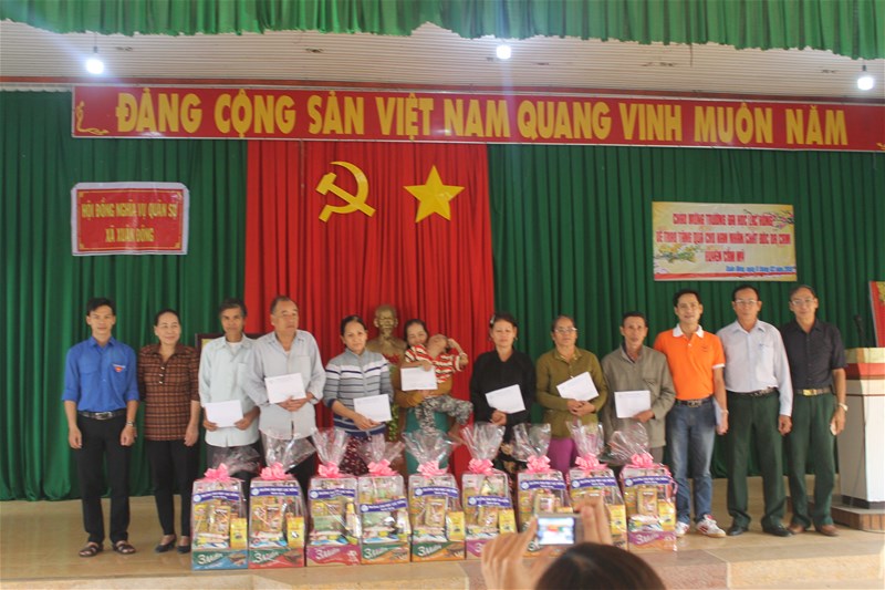 Hình 2: Các gia đình nạn nhân nhận quà của trường nhân dịp tết Mậu Tuất