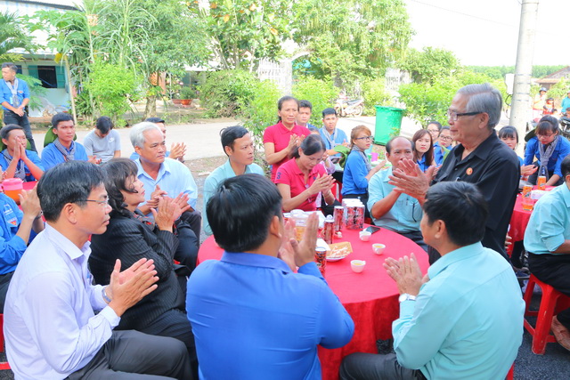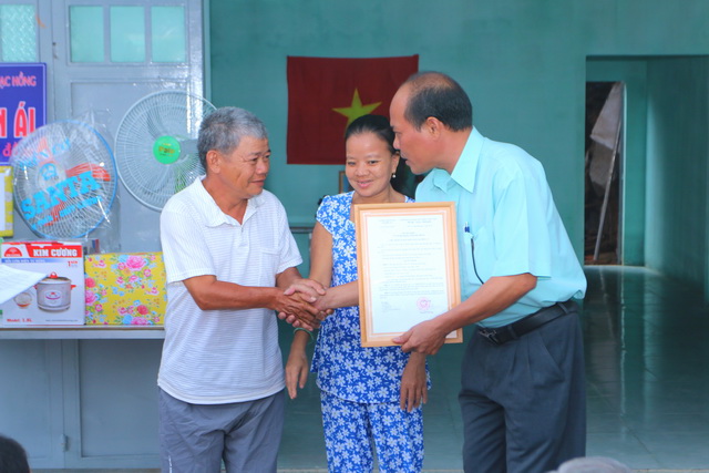 Hình 2: Đại diện nhà trường, các đoàn thể, lãnh đạo địa phương trao nhà cho chủ sở hữu