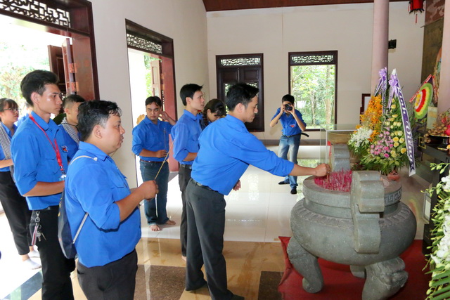 Hình 3: Sau lễ kết nạp Đảng, toàn thể buổi lễ tham gia thắp hương tại nhà bia