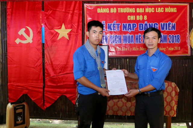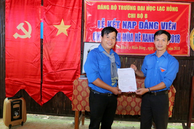Sau khoảng thời gian theo dõi và thử thách cũng như những thành tích đã đạt được trong quá trình học tập và công tác của mình. Được sự giới thiệu của tổ chức Đoàn Thanh niên, Đảng ủy trường ĐH Lạc Hồng, chi bộ 8 (Chi bộ sinh viên) đã tổ chức công bố quyết định của Đảng ủy khối các cơ quan tỉnh để kết nạp 03 Đ/c tại khu ủy miền Đồng (Chiến khu D) thuộc địa bàn xã Mã Đà, huyện Vĩnh Cửu, tỉnh Đồng Nai vào ngày 31/7/2018.