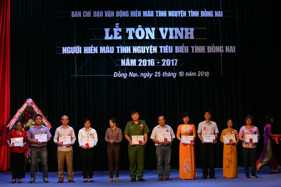 Sáng ngày 25 tháng 10 năm 2018, tại Trung tâm Hội nghị và tổ chức sự kiện tỉnh, Ban chỉ đạo vận động hiến máu tình nguyện tỉnh đã tổ chức lễ tôn vinh người hiến máu tình nguyện tiêu biểu tỉnh Đồng Nai năm 2016 - 2017.