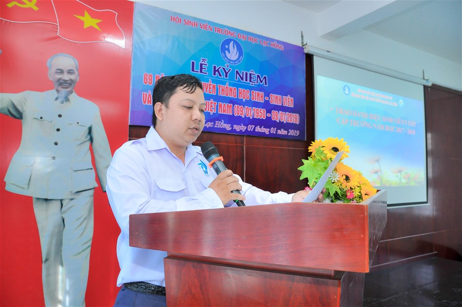 Thiết thực chào mừng kỉ niệm 69 năm Ngày truyền thống Học sinh – Sinh viên (09/01/1950 – 09/01/2019) và tuyên dương các điển hình “Sinh viên 5 tốt” cấp trường trong năm học 2017 – 2018. Sáng ngày 07/01/2019, tại phòng I209, cơ sở 6, trường Đại học Lạc Hồng; Hội Sinh viên trường ĐH Lạc Hồng đã long trọng tổ chức lễ kỉ niệm Ngày truyền thống học sinh, sinh viên và Hội Sinh viên Việt Nam.