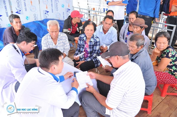 Tại buổi khám bệnh và phát thuốc, ĐH Lạc Hồng và Bệnh viện đa khoa Đồng Nai đã tận tình theo dõi sức khỏe của bà con vùng song nước, không có nhiều cơ hội để tiếp cận với các dịch vụ y tế cộng đồng, đảm bảo sức khỏe cho bản thân trong sinh hoạt hằng ngày như các bệnh về da, mắt, hô hấp….