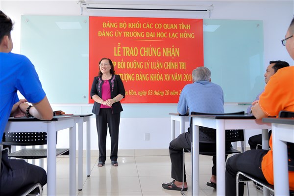 Căn cứ kết quả từ Ban Tuyên giáo Đảng ủy Khối về bài thu hoạch lớp đối tượng Đảng khóa XV năm 2019 của trường Đại học Lạc Hồng. Sáng ngày 03 tháng 10 năm 2019, Đảng ủy trường Đại học Lạc Hồng tổ chức buổi Lễ trao giấy chứng nhận cho quần chúng ưu tú, xuất sắc hoàn thành khóa học lớp đối tượng Đảng khóa XV năm 2019.