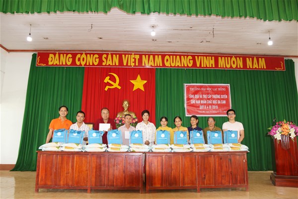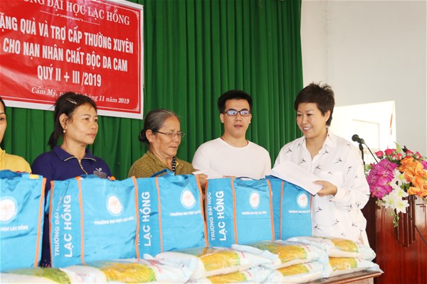 Trong ngày 01/11/2019, trường ĐH Lạc Hồng phối hợp với Hội Chất độc da cam/dioxin tỉnh Đồng Nai đã tổ chức thăm và tặng quà quý II, III/ 2019 cho 20 nạn nhân bị nhiễm chất độc da cam/dioxin tại huyện Cẩm Mỹ, tỉnh Đồng Nai. Tham gia chuyến thăm và tặng quà lần này có sự tham gia của TS. Đỗ Thị Lan Đài – Chủ tịch Hội đồng Quản trị trường ĐH Lạc Hồng, Hiệu trưởng trường Song ngữ Lạc Hồng.