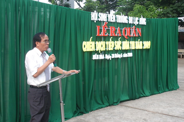 Hình 5: Thầy TS Trần Hành - Hiệu trưởng nhà trường phát biểu chỉ đạo tại lễ ra quân