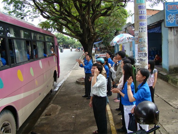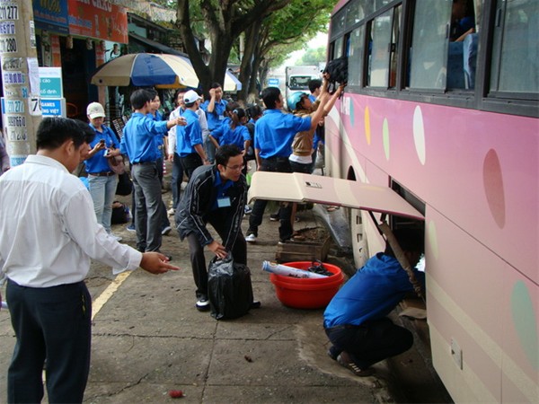 Hình 10: Đồ dùng của các bạn đang được đưa lên xe