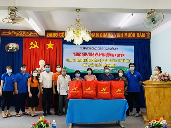 Trường Đại học Lạc Hồng và gia đình Cô Đỗ Thị Lan Đài (Chủ tịch Hội đồng trường), Thầy Đỗ Khôi Nguyên (Phó Hiệu trưởng nhà trường) hỗ trợ, trợ cấp thường xuyên cho 90 nạn nhân chất độc da cam trên địa bàn tỉnh Đồng Nai.