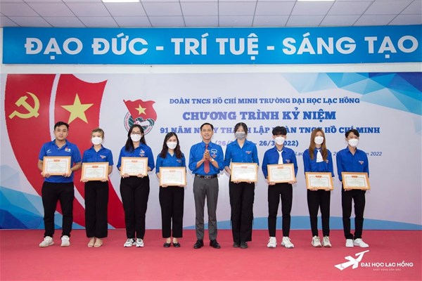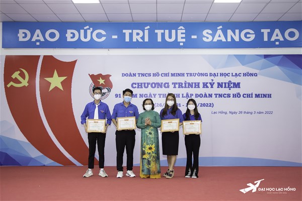 Sáng 26/3/2022, tại Hội trường E501, cơ sở 3, Ban Thường vụ đoàn trường tổ chức trao tặng các danh hiệu đã hoàn thành xuất sắc nhiệm vụ trong công tác Đoàn và phong trào thanh niên trường Đại học Lạc Hồng năm học 2020 - 2021 cho các tập thể và cá nhân có nhiều thành tích nổi bật