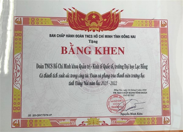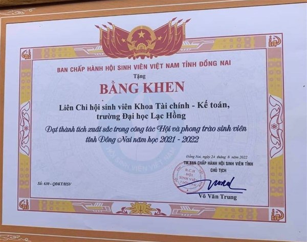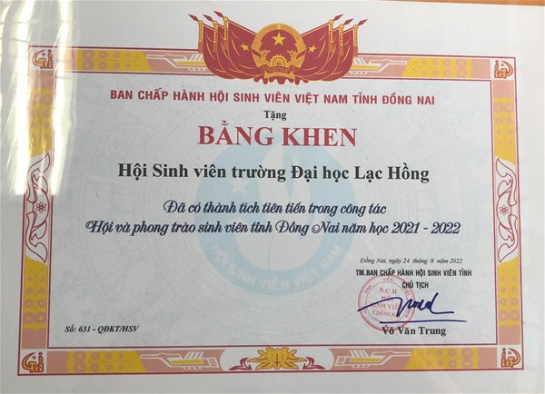 Tại hội nghị, nhiều cá nhân, tập thể trực thuọc Đoàn Thanh niên - Hội Sinh viên trường đã được Ban Thường vụ Tỉnh đoàn và Ban Thư ký Hội Sinh viên tỉnh Đồng Nai tặng bằng khen đã có thành tích xuất sắc trong công tác Đoàn và phong trào sinh viên năm học 2021 - 2022.