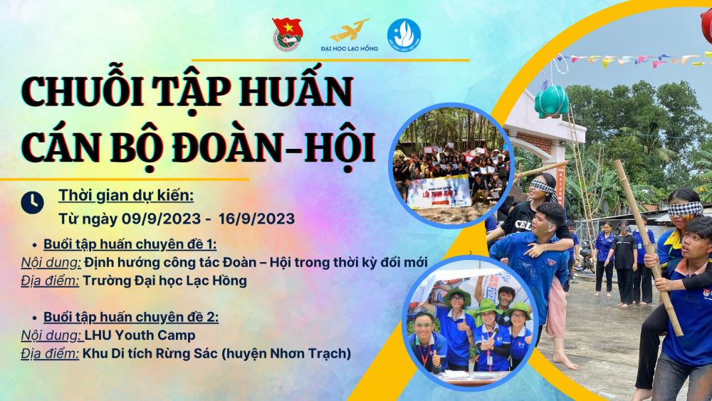 BCH Đoàn trường đại học Lạc Hồng tổ chức buổi tập huấn cán bộ Đoàn - Hội nhằm trang bị kiến thức, kỹ năng, nghiệp vụ cho đội ngũ cán bộ, qua đó nâng cao chất lượng, góp phần đẩy mạnh công tác Đoàn - Hội và phong trào thanh niên trường ngày càng vững mạnh với nội dung là những cán bộ Đoàn - Hội đi trước đồng hành trong công tác Đoàn - Hội và phong trào thanh niên tại LHU. Lớp tập huấn dự kiến sẽ diễn ra với 2 chuỗi hoạt động: