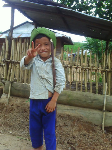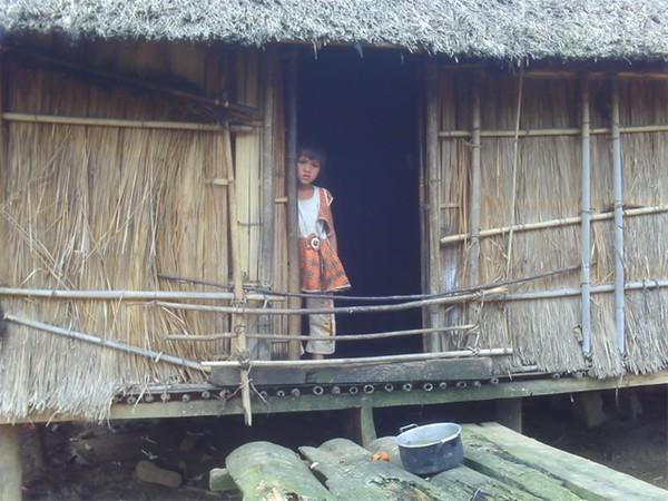 Một em bé dân tộc Xê Đăng nhút nhát không dám tiếp xúc với các bạn trong đội khi lần đầu tiên gặp mặt