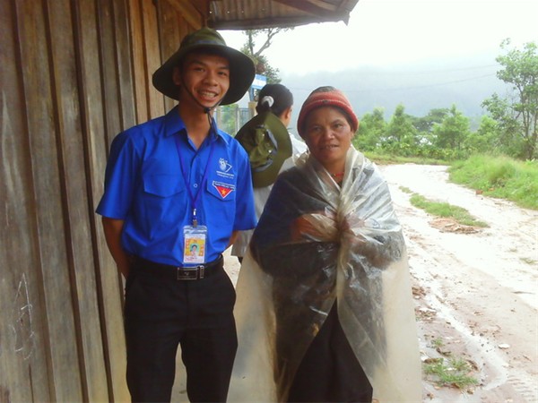 Hỏi thăm công việc trên nương rẫy của bà con dân tộc Xê Đăng trong một lần trú mưa sau khi đi công tác về