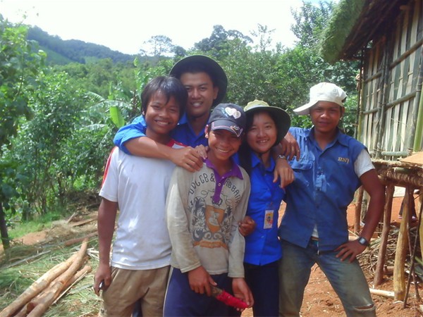 Những hình ảnh thường thấy thể hiện sự thân thiện của các bạn thanh niên người dân tộc Xê Đăng đối với các bạn sinh viên tình nguyện truờng ĐH Lạc Hồng