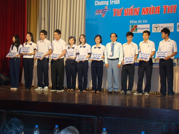 Hình 9: TS Trần Hành trao học bổng của trường cho các bạn học sinh tại buổi tư vấn