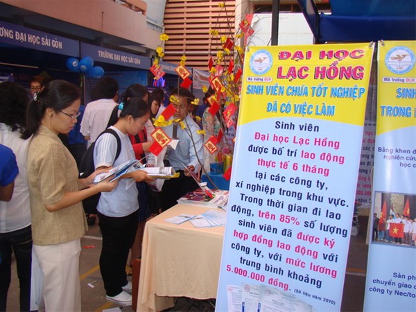 Gian hàng triển lãm của trường ĐH Lạc Hồng cũng được các bạn học sinh cũng đánh giá rất cao. Trường có dựng một tấm bảng bao gồm hàng trăm hợp đồng  lao động của sinh viên với các doanh nghiệp ngay khi chưa ra trường. Theo thống kê, năm nay đã có hơn 80% sinh viên chưa tốt nghiệp đã có việc làm. Con số này năm 2010 là hơn 90%.