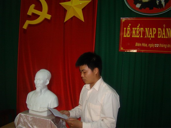 Quần chúng Trần Văn Thọ đọc đơn xin vào Đảng
