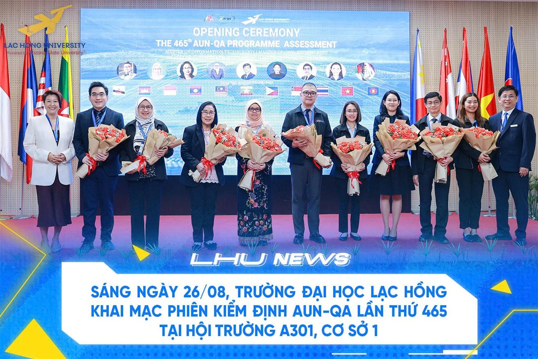 Sáng ngày 26/8/2025, Trường Đại học Lạc Hồng đã phối hợp với Mạng lưới các trường đại học Đông Nam Á (ASEAN University Network – AUN) tổ chức Khai mạc kỳ đánh giá ngoài lần thứ 465 cho 04 chương trình đào tạo trình độ thạc sĩ: Kỹ thuật xây dựng, Quản trị kinh doanh, Tài chính – Ngân hàng và Công nghệ thông tin. Đây là sự kiện quan trọng, tiếp nối chiến lược đảm bảo và nâng cao chất lượng đào tạo của Nhà trường theo chuẩn khu vực và quốc tế.