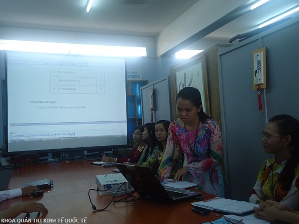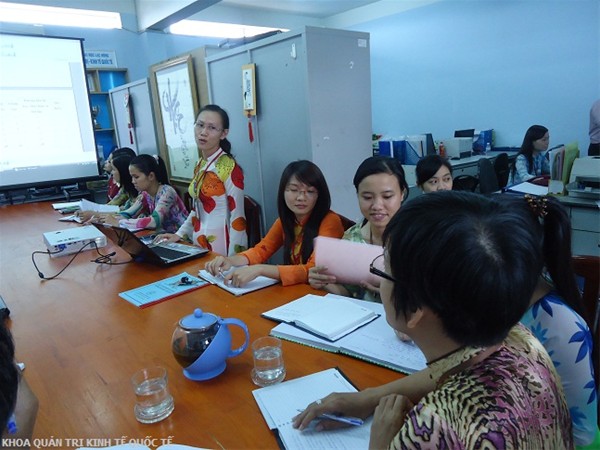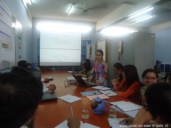 Chiều ngày 24 tháng 10 năm 2011, các thầy cô đã báo cáo 50% tiến độ bài giảng các môn Quản trị chất lượng, Liên Doanh đầu tư và Quản trị tài chính. Trong buổi báo cáo, các thầy cô soạn bài giảng đã nhận được nhiều ý kiến đóng góp quí báu từ phía các thầy cô giảng viên cơ hữu Khoa. Tham dự buổi báo cáo có sự góp mặt của Thầy TS. Nguyễn Văn Nam (Trưởng Khoa) và cô ThS. Nguyễn Hoàng Xuân Anh (Phó trưởng Khoa) cùng các thầy cô là giảng viên cơ hữu, trợ giảng của Khoa.