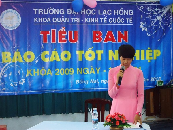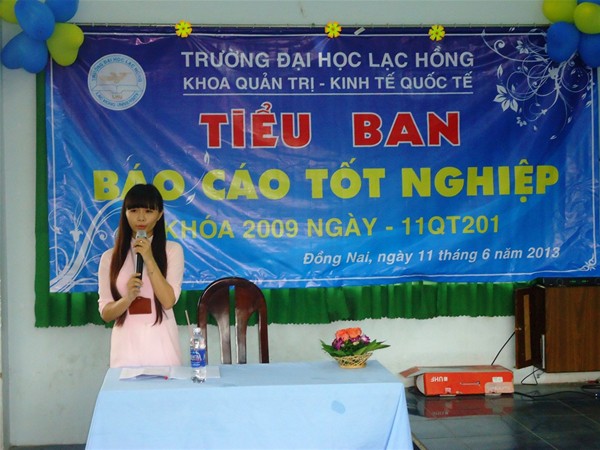 Được sự đồng ý của Ban Giám Hiệu Trường Đại học Lạc Hồng, sáng ngày 11 tháng 6 năm 2013 tại các phòng D301; D302; D303; D304 và D405 cơ sở II, Khoa Quản trị - Kinh tế quốc tế đã tổ chức Báo cáo tốt nghiệp cho Khóa 2009 Ngày và  lớp 11QT201.