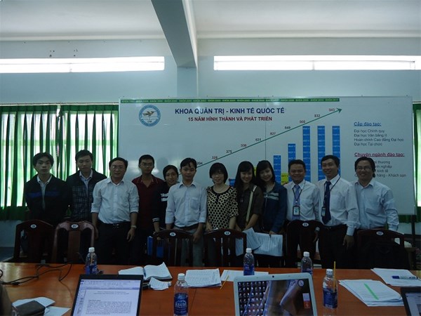 Với mục đích nâng cao chất lượng đào tạo, hướng đề tài NCKH sinh viên của Đại học Lạc Hồng nói chung và Khoa QT-KTQT nói riêng đi vào chiều sâu. Sáng ngày 06/01/2014, tại VP. Khoa QT-KTQT đã diễn ra buổi góp ý nhằm hoàn thiện các đề tài NCKH sinh viên khóa 2009 đêm. Thành phần tham dự gồm có TS. Nguyễn Văn Tân - Trưởng Khoa QT-KTQT, ThS. Nguyễn Thị Lan Thanh - Phó Trưởng Khoa QT-KTQT, các Thầy/Cô giảng viên cơ hữu của Khoa cùng 8 sinh viên có đề tài NCKH vừa báo cáo trong Hội đồng NCKH cấp trường ngày 30/12/2013.