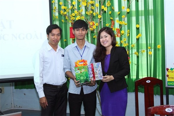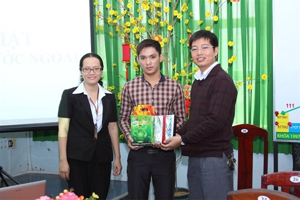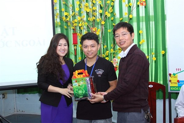 Các sinh viên nước ngoài còn thể hiện tài năng ca hát và chơi nhạc cụ qua các tiết mục văn nghệ do chính các bạn thể hiện gửi tặng đến tập thể sư phạm Khoa QT-KTQT. Cuối buổi họp mặt, các bạn được nhận những phần quà thay cho lời chúc Tết an khang, thịnh vượng gửi đến các du học sinh Lào và Campuchia.