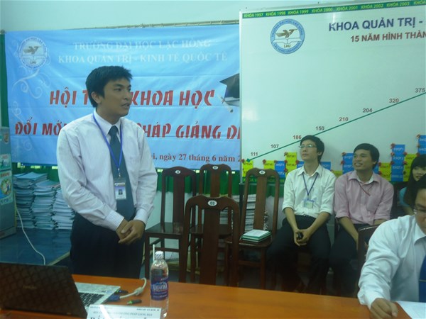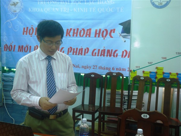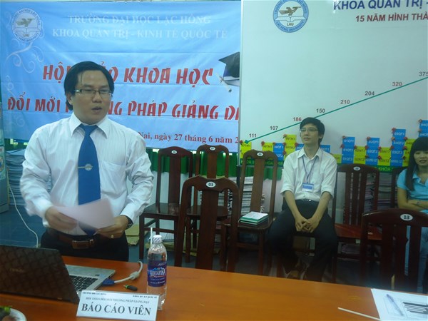 Ngày 27 tháng 6 năm 2014 tại Phòng D205, cơ sở 2, Trường Đại học Lạc Hồng, khoa Quản trị - Kinh tế quốc tế đã tổ chức Hội thảo “Đổi mới phương pháp giảng dạy” nhằm nâng cao chất lượng giảng dạy và học tập của giảng viên, sinh viên và tạo điều kiện cho giảng viên trong Khoa cùng nhau trao đổi kinh nghiệm giảng dạy. Đến dự với Hội thảo có sự tham dự của đông đủ các thầy, cô giảng viên thuộc Hội đồng khoa học của Khoa, các trưởng ngành và giảng viên tham gia giảng dạy trực tiếp tại Khoa.