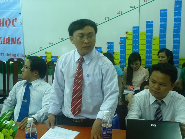Sau phần phát biểu khai mạc Hội thảo của TS. Nguyễn Văn Tân, lần lượt các thầy cô đại diện Khoa báo cáo tham luận với nhiều chủ đề khác nhau. Qua gần 3 giờ đồng hồ, Hội thảo đã diễn ra trong không khí thảo luận sôi nổi trên cơ sở giải quyết những vấn đề đặt ra hiện nay trong đào tạo như: