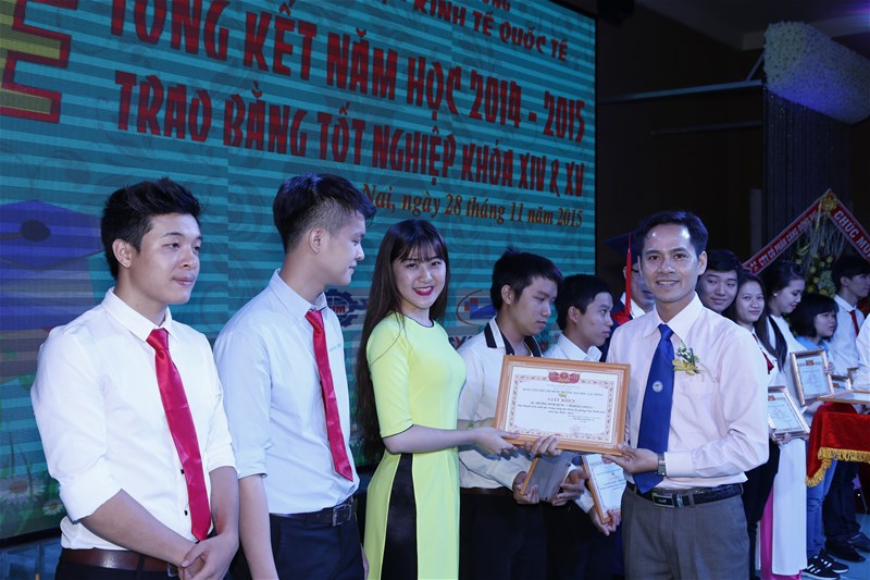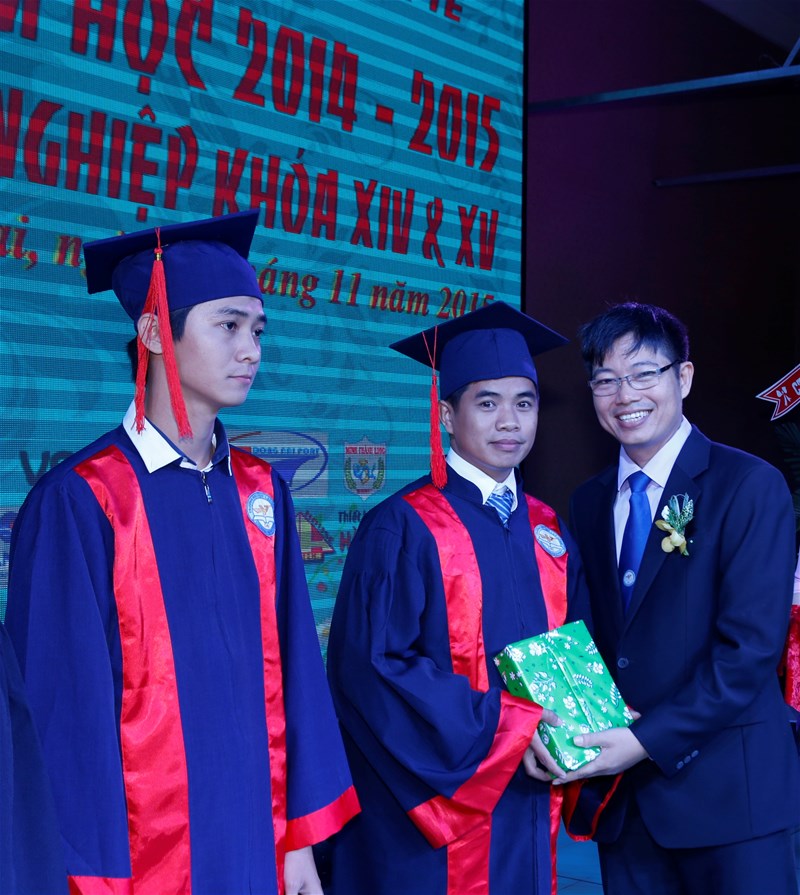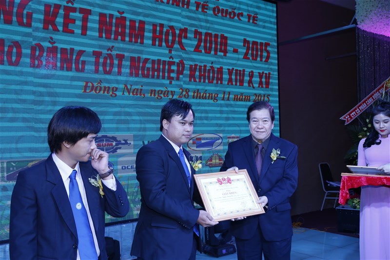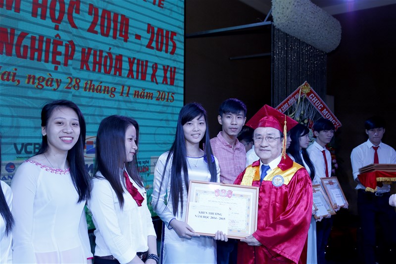 Tiếp nối chương trình buổi lễ là phần khen thưởng cho các sinh viên có thành tích khá, giỏi, sinh viên nghèo vượt khó và các phong trào trong năm học 2014-2015.