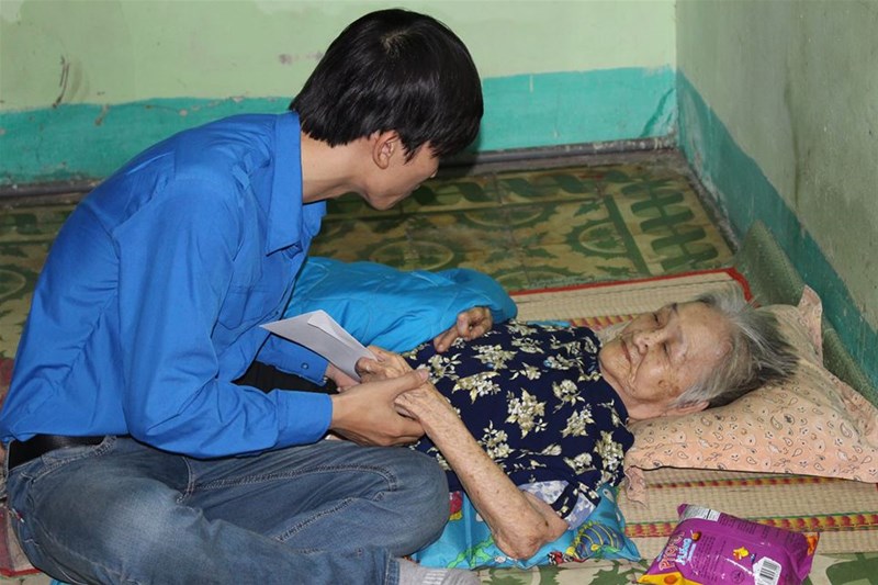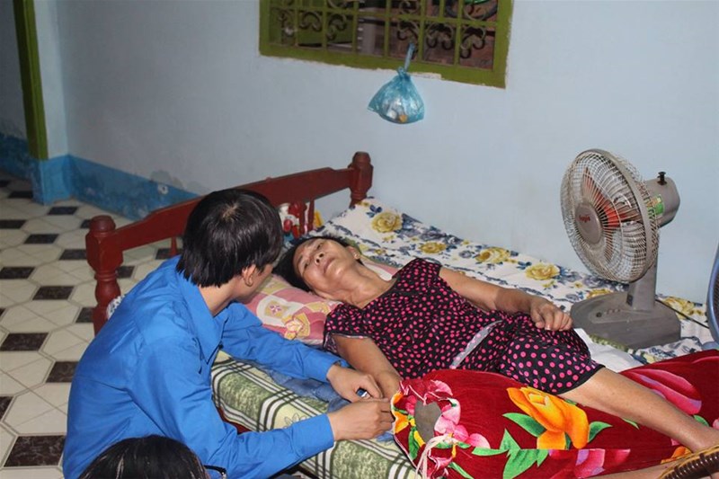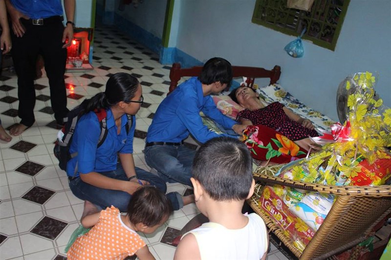 Điểm đến đầu tiên của chúng tôi là gia đình cụ bà Hồng Thị Cúc (163/40 KP4 P. Hòa Bình). Gia đình của cụ vốn đã khó khăn nay lại càng khó khăn hơn khi người con trai bị tàn tật, mất sức lao động. Mọi nguồn thu nhập đều được tạo ra một cách khó khăn từ tay của đứa con gái. Chúng tôi không thể kiềm nổi sự xúc động trước hình ảnh một cụ bà 80 tuổi ngồi chăm cơm cho đứa con trai tàn tật của mình. Ở cái độ tuổi đáng ra bà phải đang được tĩnh dưỡng tuổi già, thì bà lại phải nai lưng làm việc nhà, nấu cơm, chăm sóc cho con cái.