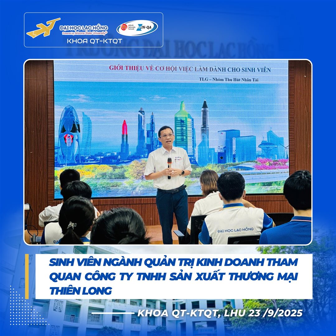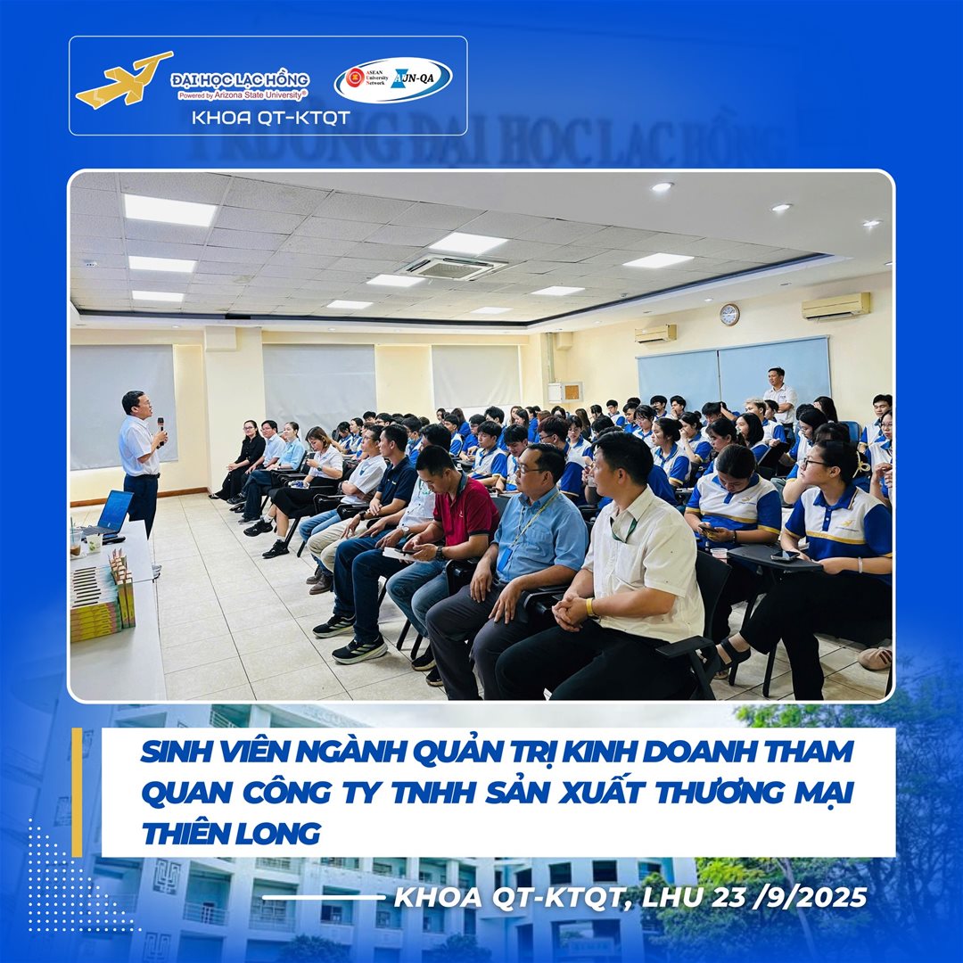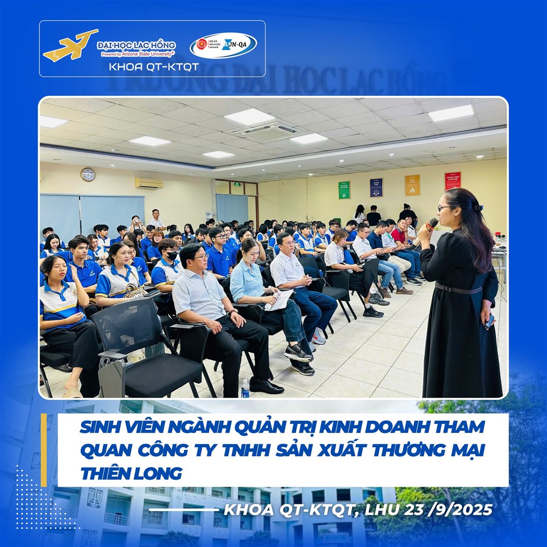 Ngày 23 tháng 9 năm 2025 – Khoa Quản trị - Kinh tế Quốc tế, Trường Đại học Lạc Hồng đã tổ chức chuyến tham quan thực tế đầy ý nghĩa tại Công ty TNHH Sản xuất Thương mại Thiên Long Long Thành cho sinh viên năm 2 ngành Quản trị Kinh doanh (QTKD). Chuyến đi mang đến cơ hội quý báu để sinh viên kết nối lý thuyết với thực tiễn, khơi dậy động lực học tập và định hướng nghề nghiệp rõ nét.