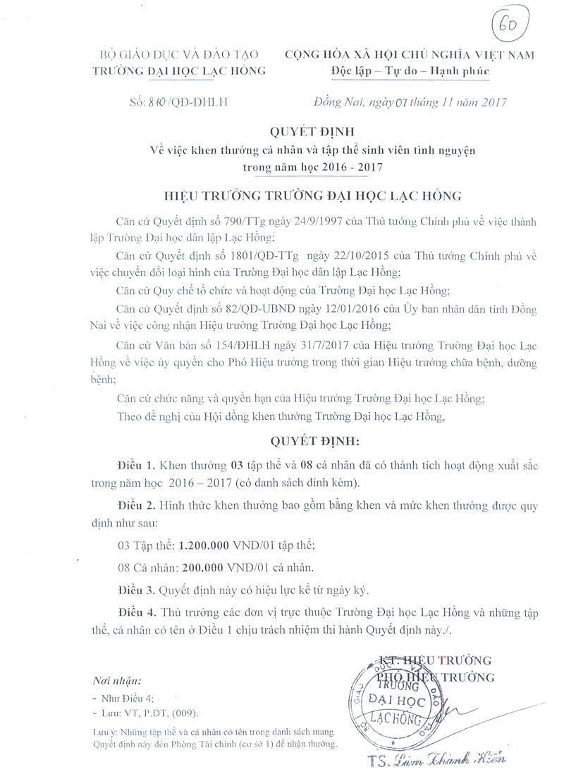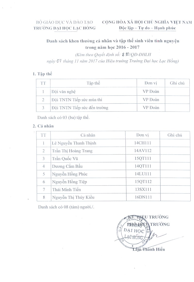 Hình 2: Danh sách các tập thể, cá nhân được khen thưởng