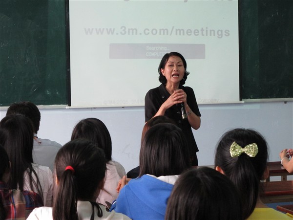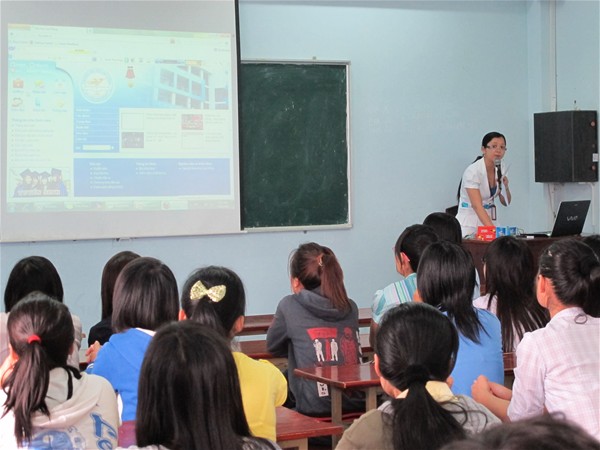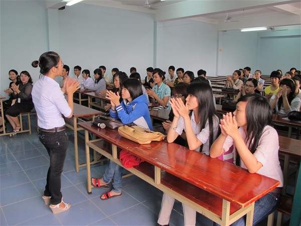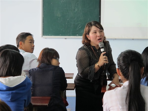 Cô Lê Thị Ngọc Hương- Phó Khoa Ngoại ngữ đang giải đáp thắc mắc của sinh viên