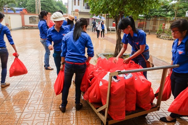 Với hy vọng bù đắp được phần nào những khó khăn, mất mát mà các em đang phải đối mặt, Đoàn – Hội sinh viên khoa Ngôn ngữ Anh đã vận động quyên góp và mang đến cho các em những phần quà nhỏ tuy không có giá trị lớn về mặt vật chất nhưng chứa đựng tình cảm và sự sẻ chia về mặt tinh thần. Tại đây, sau phần giao lưu sinh hoạt cùng các em, đoàn đã trao 40 phần quà bao gồm gạo, đường, nước tương, mì, cháo, bánh kẹo, sữa, quần áo, giày dép,  truyện tranh, sách giáo khoa và các đồ chơi trẻ em do các bạn sinh viên quyên góp được.