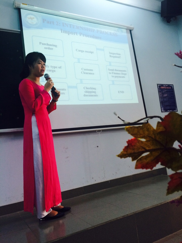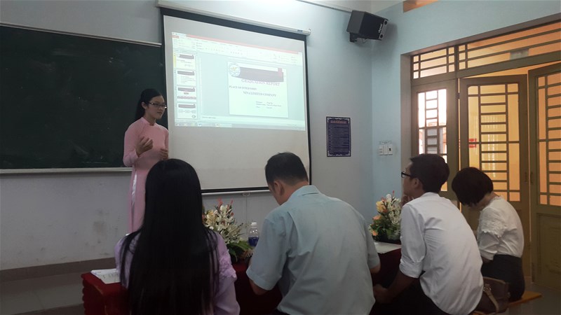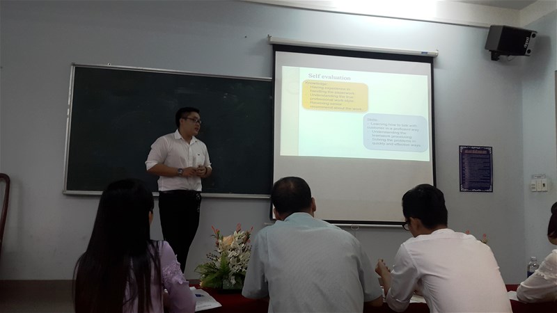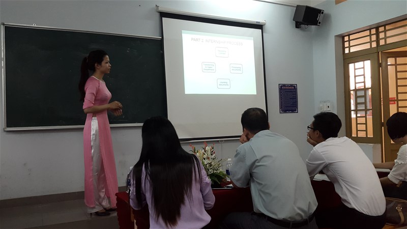 Ngoài việc trình bày lại những điều mình đã trải nghiệm trong suốt quá trình thực tập, đây còn là cơ hội để các bạn sinh viên chia sẻ những thuận lợi cũng như khó khăn của mình đến thầy cô và bạn bè; đồng thời đưa ra hướng đề xuất đối với nhà trường và công ty để cải thiện những khó khăn, thiếu sót gặp phải khi các bạn làm quen với môi trường làm việc mới. Hội đồng đã đưa ra những nhận xét, góp ý chân thành cho phần báo cáo của từng sinh viên. Hy vọng sau buổi báo cáo này, các bạn sẽ chuẩn bị thật tốt kiến thức cho kỳ thi tốt nghiệp sắp tới. Sau đây là một số hình ảnh: