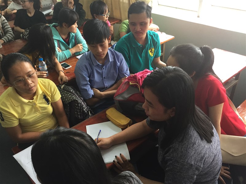 Ở hoạt động cuối cùng, các bạn sinh viên nhiệt tình làm việc theo nhóm, sắp xếp các hoạt động theo bốn danh mục: Thể dục thể thao ( Sports), Hoạt động vì cộng đồng ( Community Services), Văn hóa nghệ thuật ( Entertainment- Art), Học thuật (Academic Actvities).