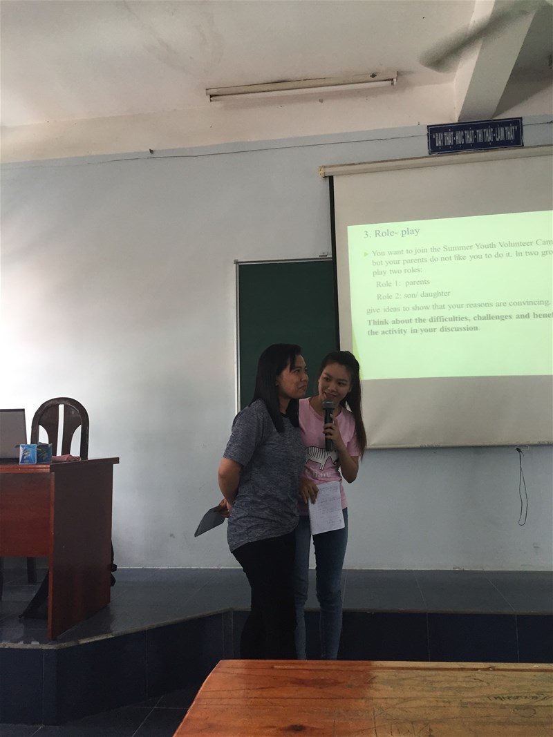 Ở hoạt động thứ ba, sinh viên có thời gian tham gia đóng vai tình huống phụ huynh và con cái. Trong tình huống này, phụ huynh dùng các lý do thuyết phục con không tham gia hoạt động ngoại khóa, và ngược lại người con cố gắng thuyết phục phụ huynh để tham gia.  Hai bạn sinh viên Bạch Ngân (13AV111)- vai mẹ và Thiện (13AV112)- vai con đã có cuộc tranh luận nảy lửa để thuyết phục lẫn nhau khiến cả hội trường sôi động hẳn lên.