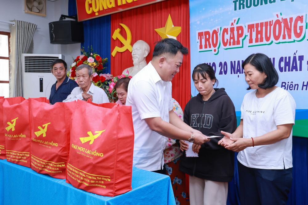 On June 25, 2025, Lac Hong University (LHU) organized a meaningful community engagement event to deliver essential gifts and second-quarter financial support to 20 victims of Agent Orange/dioxin in Bien Hoa City. This initiative reflects not only the university’s deep-rooted social responsibility but also its commitment to cultivating humanistic values and ethical education among students.