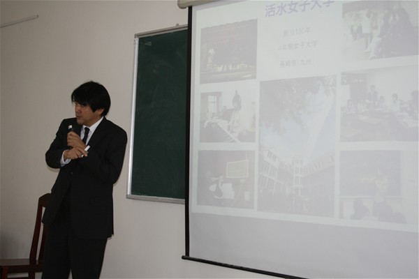 Ông Watanabe đang giới thiệu về Trường Đại học Kwassui