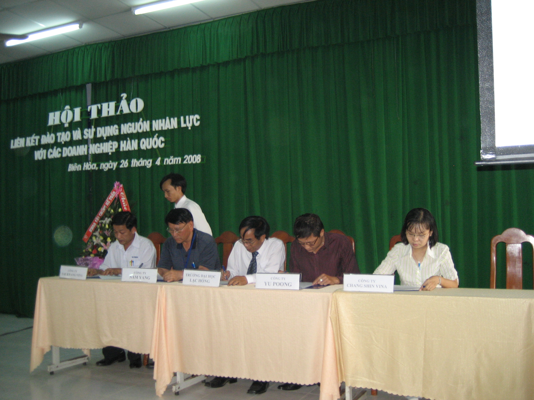 Ngày 26 tháng 4 năm 2008 trường Đại học Lạc Hồng tổ chức hội thảo với các Doanh nghiệp Hàn Quốc chủ đề “Liên kết đào tạo và sử dụng nhân lực”.