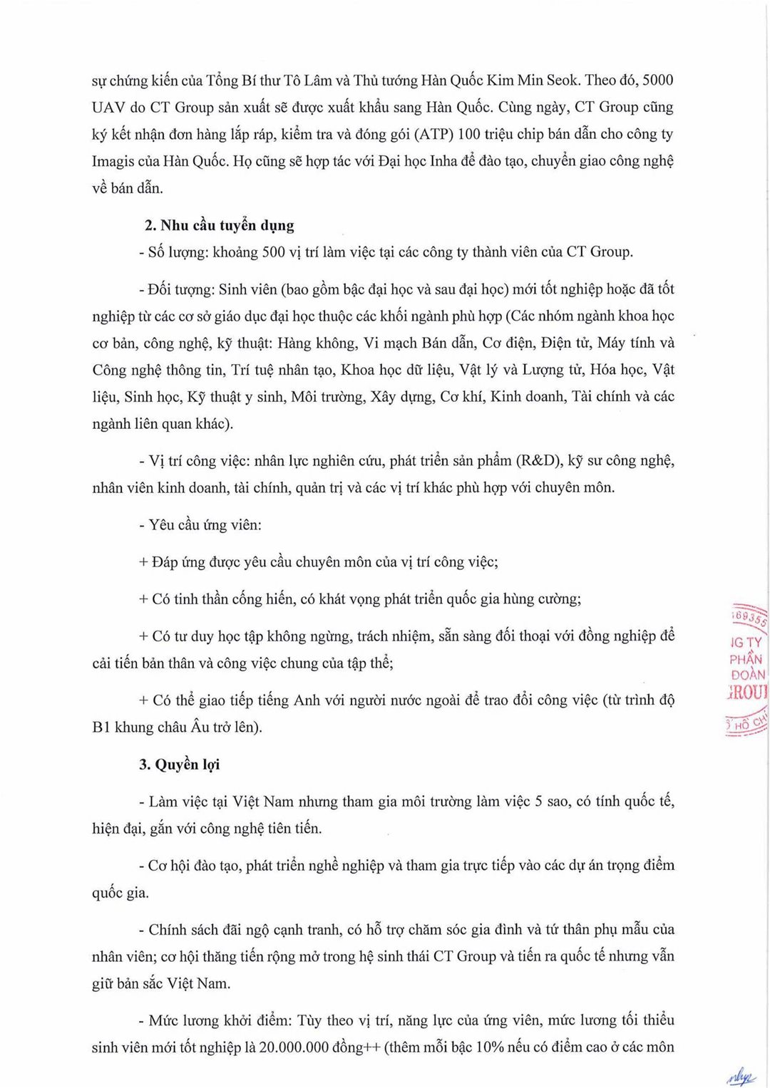 Tập Đoàn CT Group tuyển dụng các vị trí sau