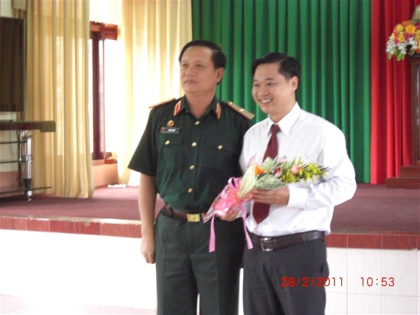 PGS.TS. Thiếu tướng Vũ Đức Hinh – Hiệu trưởng trường Sĩ quan lục quân II tặng hoa cho Thầy Nguyễn Bá Thuận.