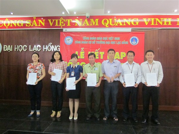 Tham dự buổi Lễ có sự hiện diện của TS. Diệp Cẩm Thu – Chủ tịch Công đoàn, TS. Nguyễn Văn Nam – Phó Chủ tịch Công đoàn, quý Thầy Cô đại diện cho BCH Công đoàn ,Tổ trưởng Công đoàn và 33 công đoàn viên được kết nạp đợt 01 – năm 2013.