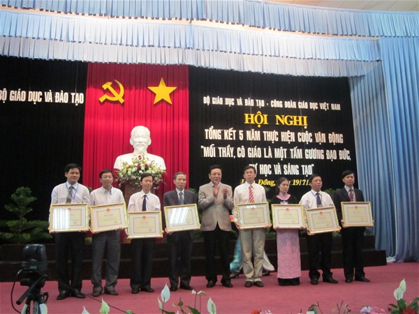 Tại Hội nghị Tổng kết 5 năm thực hiện Cuộc vận động, đại diện Trường Đại học Lạc Hồng – Thầy Trần Phú Cường – Giảng viên khoa CN Hóa – Thực phẩm đã vinh dự được Bộ GD&ĐT và CĐGD Việt Nam đã tặng Bằng khen vì đã có thành tích xuất sắc tham gia cuộc vận động.