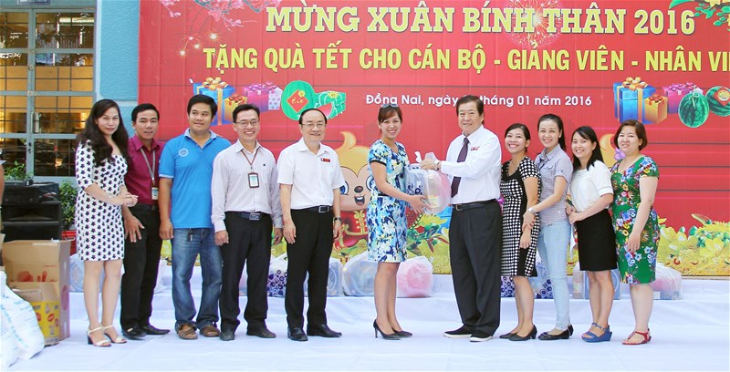 Nhằm nhân rộng chuỗi hoạt động chăm lo đời sống của công đoàn viên, ngày 27/01/2016 (18/12/2015 ÂL) đại diện Ban Giám Hiệu, Ban Chấp hành Công đoàn Trường (BCH) đã tổ chức tặng 518 phần quà Tết Bính Thân - 2016 cho công đoàn viên của nhà trường.