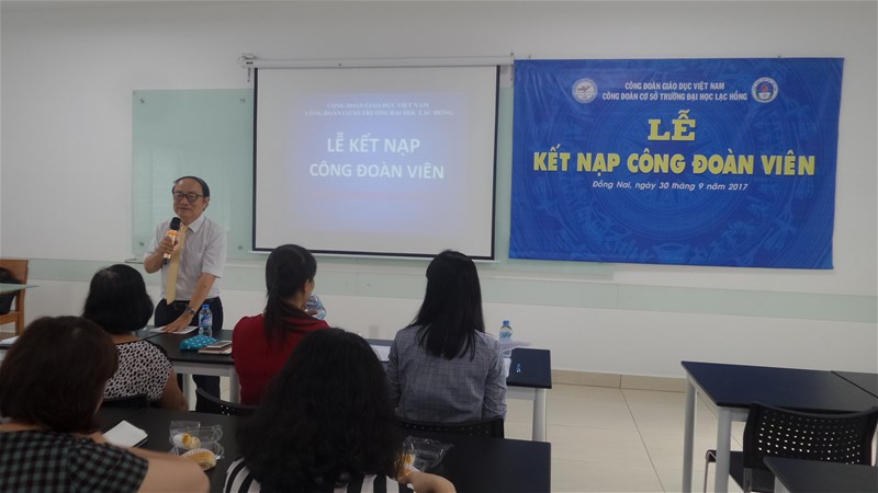 Sáng ngày 30/9/2017, Ban chấp hành Công đoàn trường Đại học Lạc Hồng trang trọng tổ chức lễ kết nạp Đoàn viên Công đoàn cho 18 Nhà giáo người lao động. Đến tham dự buổi lễ có TS Diệp Cẩm Thu (Phó Hiệu trưởng - Chủ tịch Công đoàn), Cô Lê Thị Thu Hương (Ủy viên Ban Thường vụ Công đoàn), Các Thầy (Cô) Ủy viên Ban Chấp hành, các Tổ trưởng Công đoàn cùng các cá nhân được xét kết nạp Đoàn viên Công đoàn năm 2017.