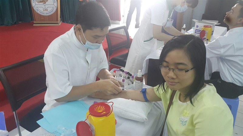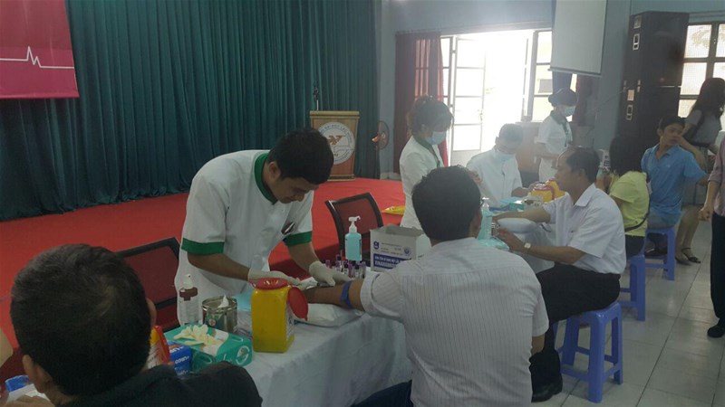 Từ ngày 01 đến ngày 02/6/2017 CBGVNV được nhân viên y tế tiến hành lấy máu xét nghiệm ngay tại trường.