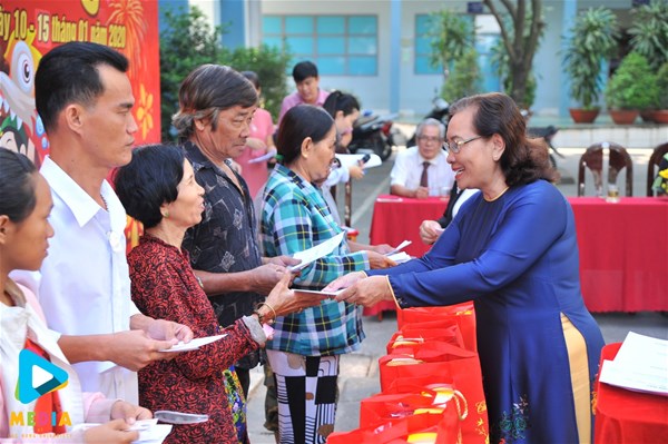 Bên cạnh việc chăm lo Tết cho đội ngũ NGNLĐ trong nhà trường, chương trình “Xuân Yêu thương” đúng nghĩa với tên gọi cũng đã trao tặng gần 100 phần quà Tết nhằm động viên tinh thần cho các hộ nghèo tại phường Bửu Long, thành phố Biên Hòa, nơi tọa lạc của Trường. Mỗi hộ gia đình được trao tặng 01 phần quà gồm các vật phẩm ngày Tết trị giá 200.000 đ kèm 200.000 đ tiền mặt, ngoài ra mỗi hộ còn được các mạnh thường quân trao thêm tiền mặt và 5 kg gạo. Đây là một trong những hoạt động nhân văn, nghĩa tình được tập thể sư phạm nhà trường duy trì và thực hiện đều đặn mỗi dịp xuân về.