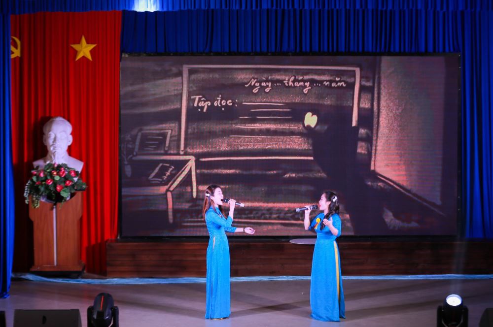 Giải Nhì song ca “Bài Ca Người Giáo Viên Nhân Dân” Cô Bích Vân và Cô Đỗ Thùy (bìa trái sang).